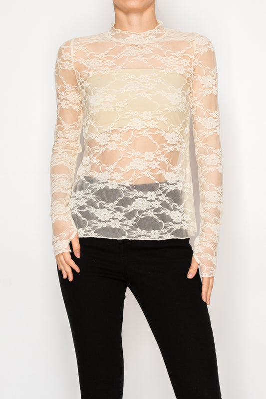 ALL LACE SHEER LONG SLEEVE TOP