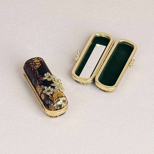 Small Floral Brocade Lipstick Case / Holder with Mirror