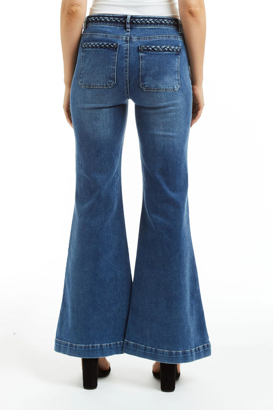 Mid Rise Braided Waist And Ft Patch Pkt Flare