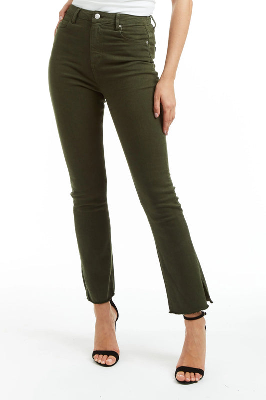 High Rise Crop Flare With Side Slit And Raw Hem Jeans - Fern