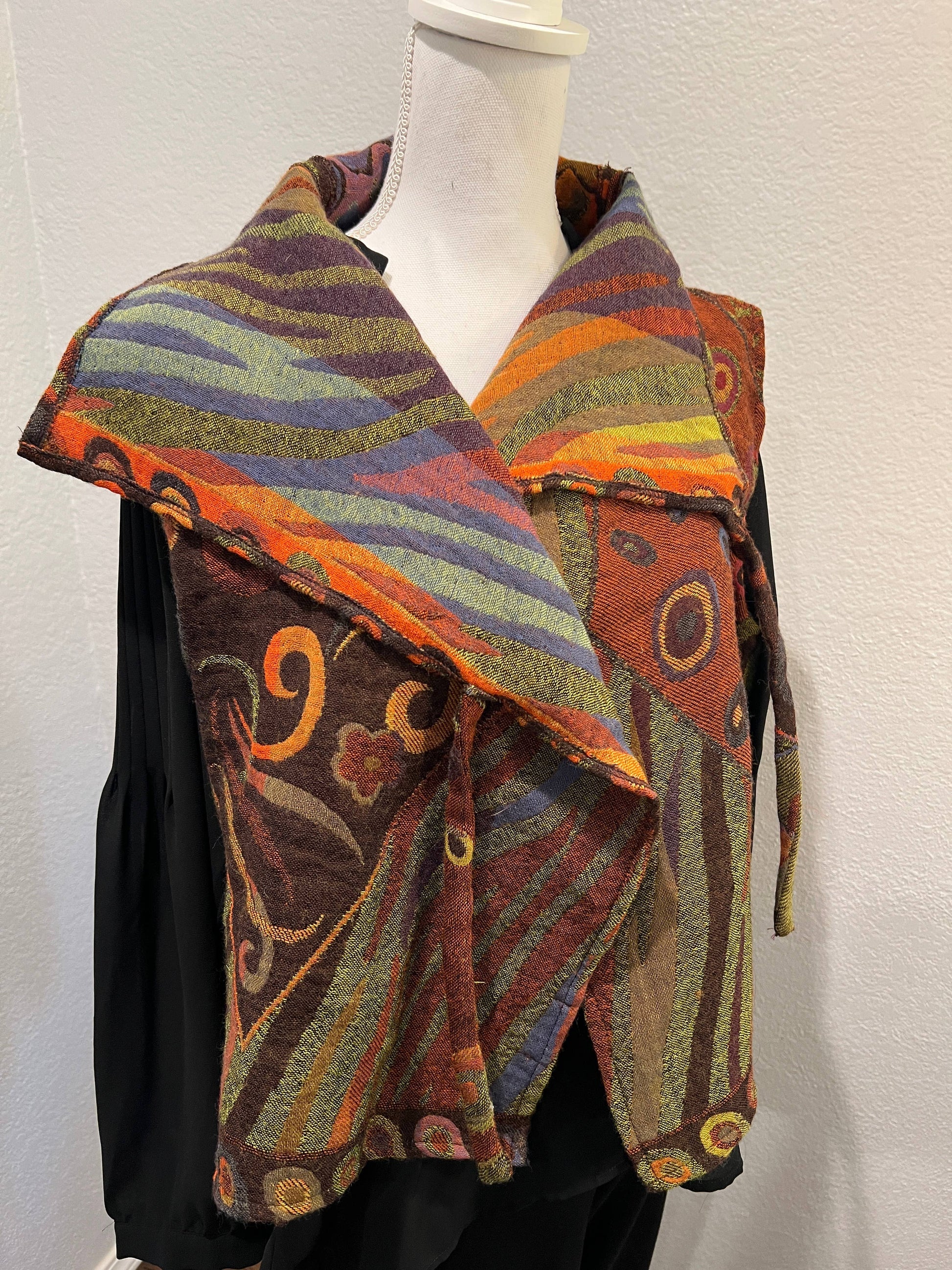 Artistic design infused with Boiled Merino Wool inspired the Anna Vest to be a part of our collection.