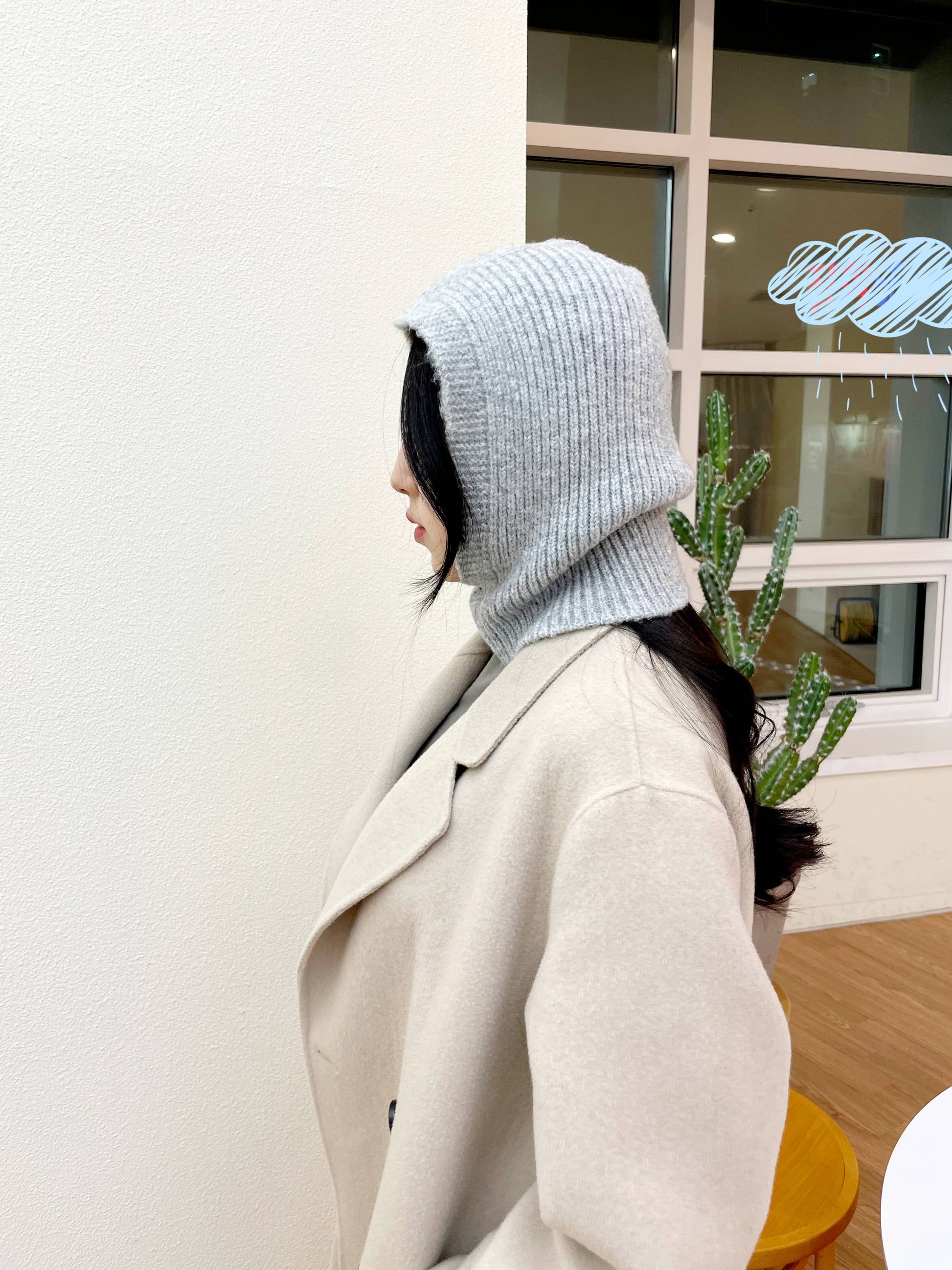 Sweater knit Alpaca hooded winter balaclava Hat