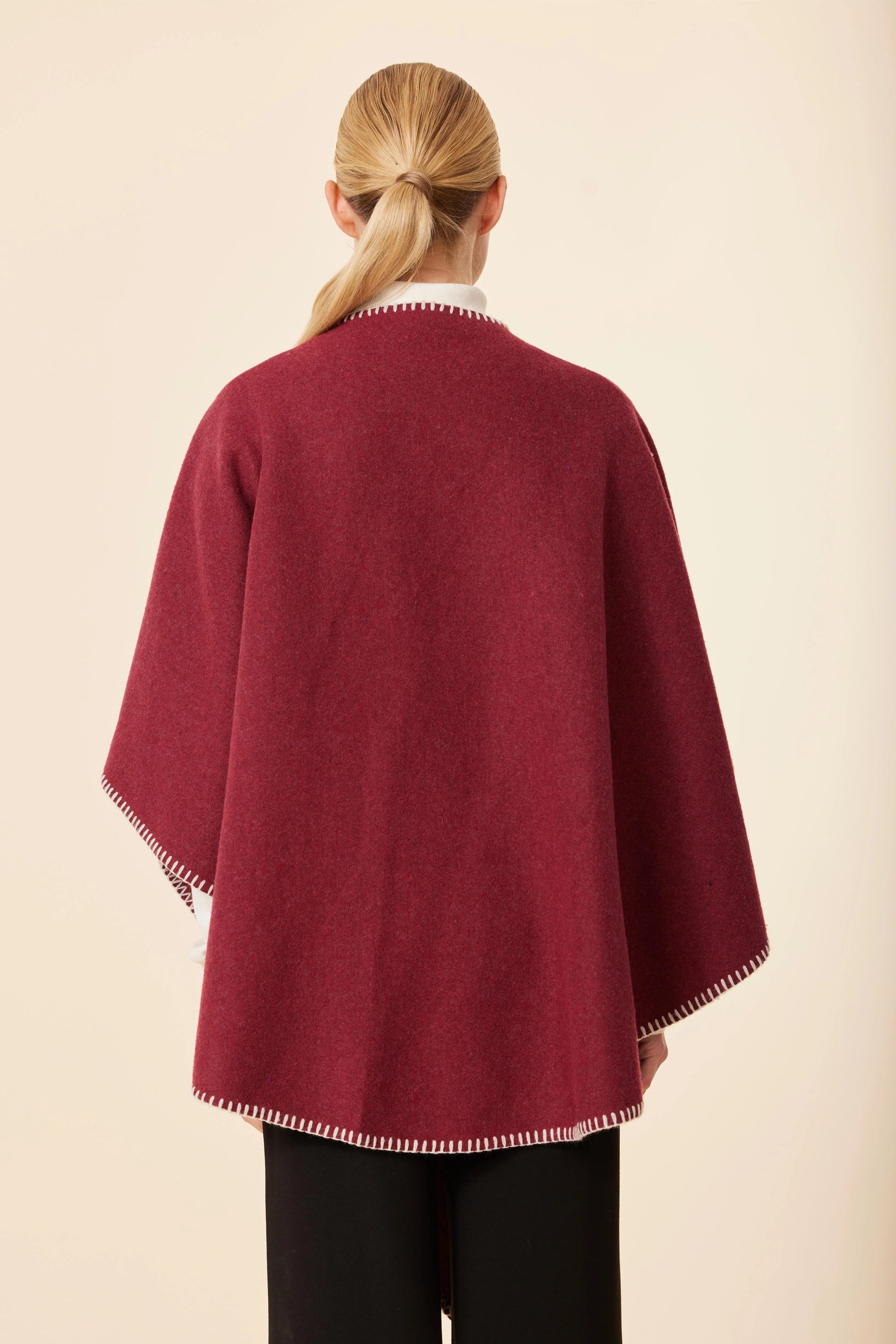 Wrap yourself in effortless sophistication with our fall poncho wrap. Designed with contrast stitching and a belted front, this versatile piece layers beautifully over sweaters and blouses for cozy-chic styling. Perfect for fall apparel, this poncho adds warmth and timeless elegance to your wardrobe, making it a must-have for crisp autumn days.